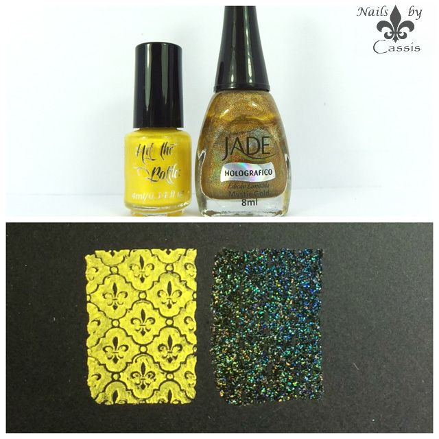 I don't have a similar colour, so I pulled out this Jade holo because I thought it looked quite yellowy.